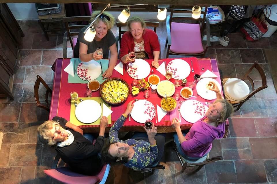 Geen “over the top resort” dus, maar wel de schaarse luxe van ruimte, stilte en spectaculaire sterrenhemels. Gastvrijheid, diepgang en genieten staan voorop, én (h)eerlijk eten! De maaltijden zijn vegetarisch en met lokale/biologische producten bereid, zo mogelijk uit onze eigen groentetuin.